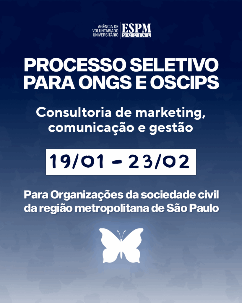 Estão abertas as inscrições do Processo Seletivo destinado a ONGs e OSCIPs, que pertencem a região metropolitana de São Paulo, para uma consultoria de Marketing, Comunicação e Gestão!